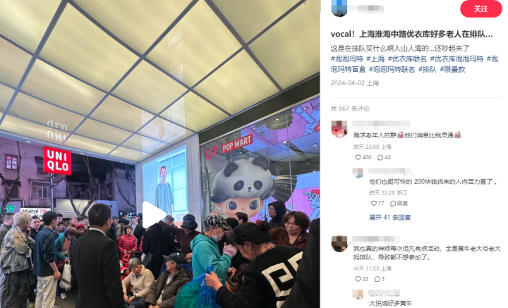 社交媒体上,不少网友反映,4月2日晚就有不少人开始通宵排队,其中还包括很多老爷爷老奶奶。