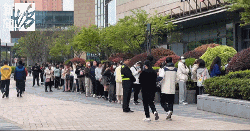 而在4月4日上午九点,五角场合生汇门口排队的人群从一圈圈的铁栅栏排出去,根本望不到头。
