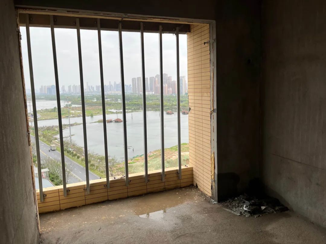 事故中受损严重的西侧次卧,它的毛坯状态与客厅类似,有一面半封闭的玻璃围栏、一扇玻璃推拉门。推拉门之外的空间,只能容纳一人步入。在记者走访的多个家庭中,这扇推拉门,都在装修时被拆除。
