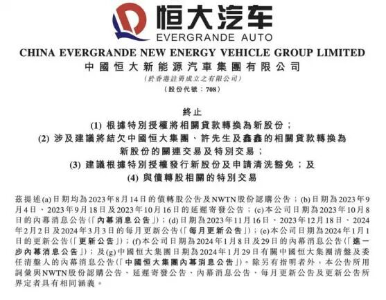 然而,由于未能满足该协议中的先决条件,该协议已于2023年12月31日失效。彼时,恒大汽车公告称,将继续就修订拟议交易及债转股之若干关键条款进行磋商。