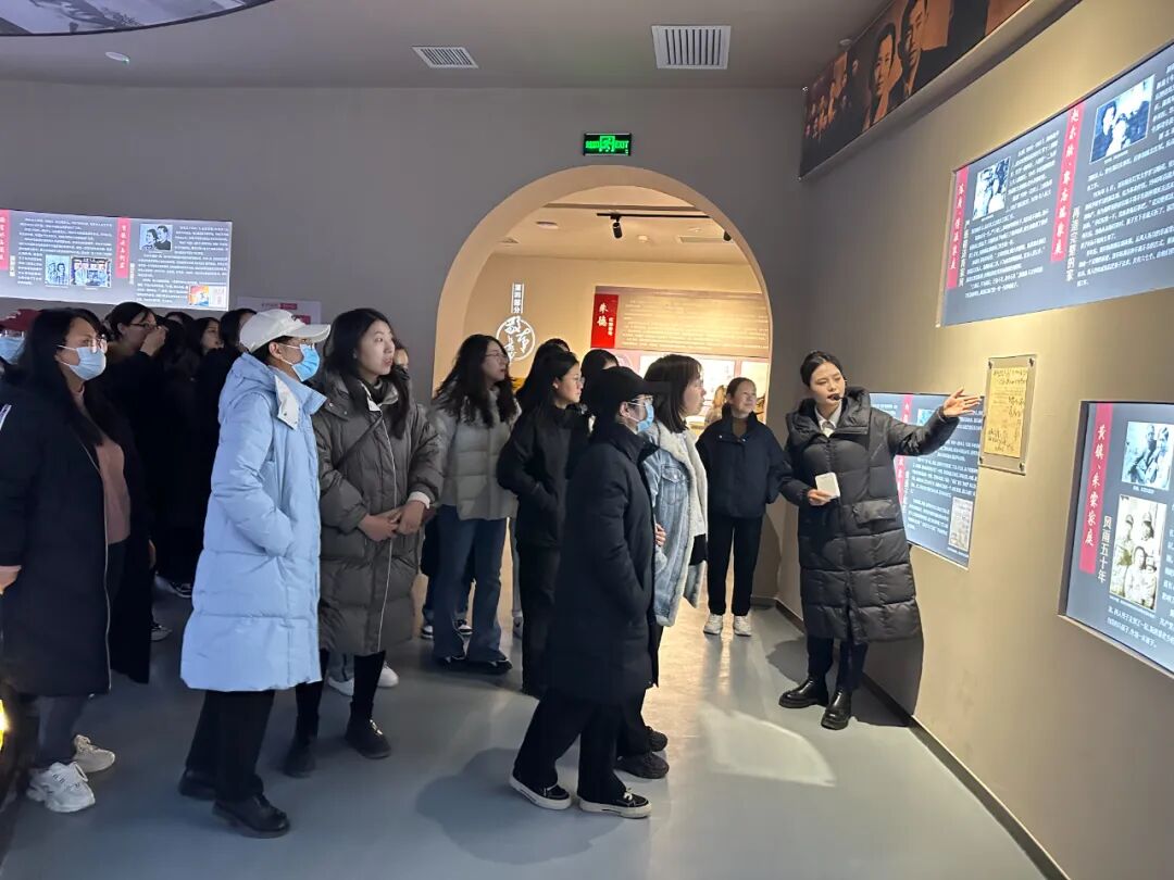 2024年3月7日,延安红色家风馆讲解员马欣悦(右一)为前来学习的延安新区高级中学教师们讲解 延安红色家风馆供图