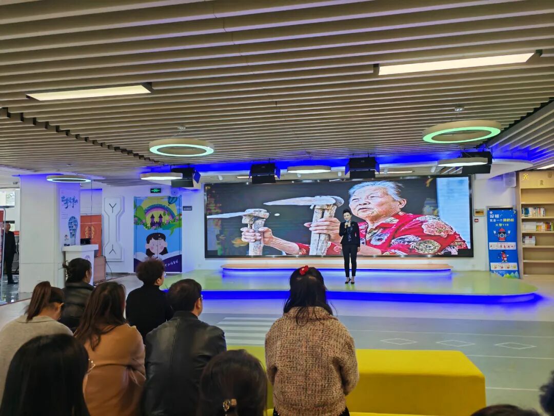 2024年3月13日,延安市宝塔区“初心的光辉”宣讲团在延安市图书馆开展宣讲。宣讲员、国家税务总局延安市税务局干部刘楠在讲述南泥湾侯秀珍老人的故事 李亚楠 摄