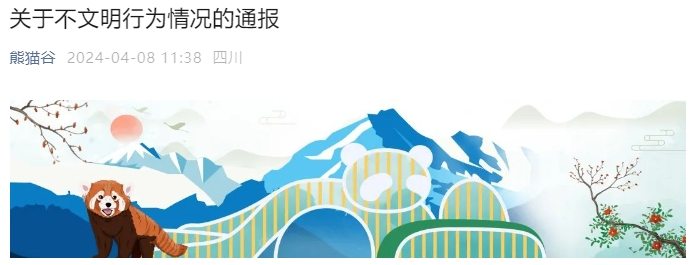 4月8日,“熊猫谷”微信公众号发布《关于不文明行为情况的通报》,6人因不文明行为被终身禁入成都大熊猫繁育研究基地(含熊猫谷)。