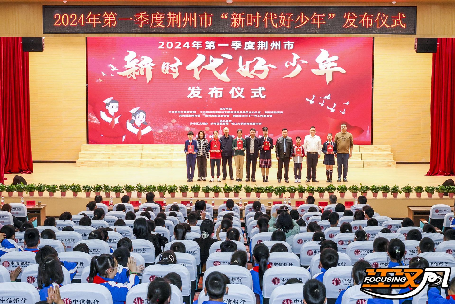 江汉风报道:4月10日上午,2024年第一季度荆州市“新时代好少年”发布仪式在长江大学沙市附属中学举行,本次活动由市委宣传部、市委文明办、市教育局、团市委、市妇联、市关工委主办,沙市区文明办、沙市区教育局、长江大学沙市附属中学协办。