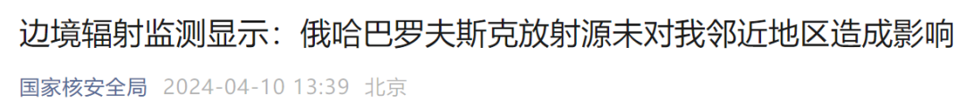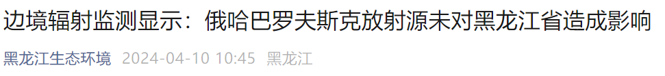 边境辐射监测显示:俄哈巴罗夫斯克放射源未对黑龙江省造成影响
