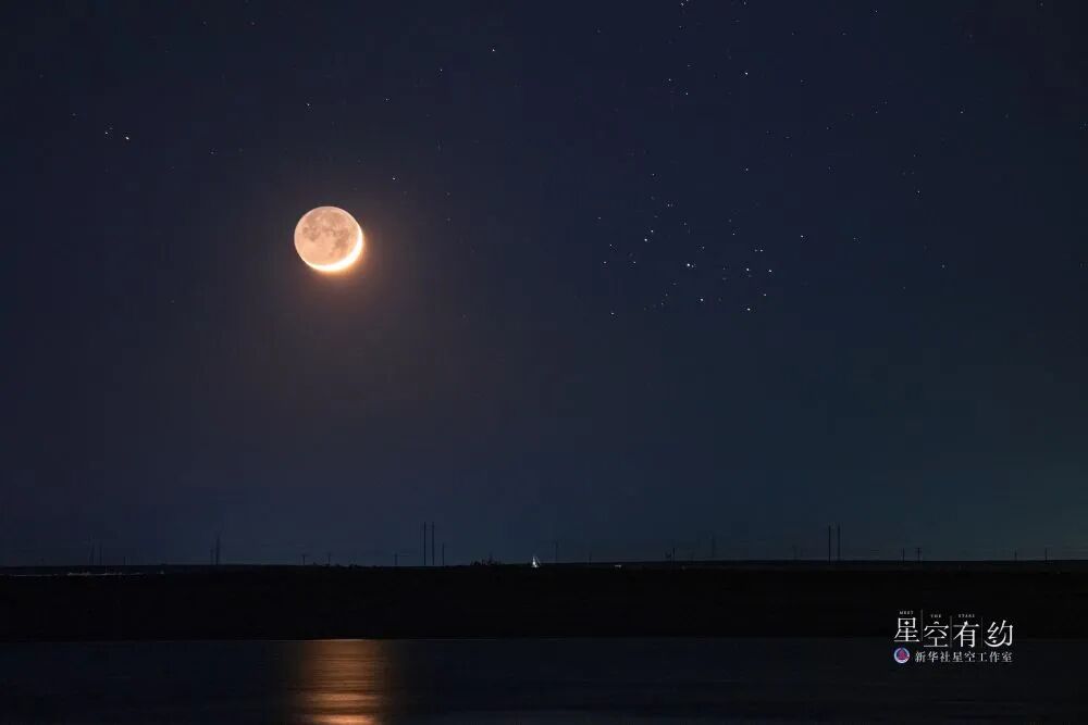 重庆星空摄影爱好者戴建峰2023年4月22日在新疆克拉玛依拍摄的昴星团伴月。(拍摄者供图)