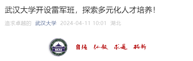4月11日,武汉大学官宣:开设雷军班,探索多元化人才培养。今年计划招收30人,采用个性化的学制选择,本硕博自主定制,可100%具备保研资格。