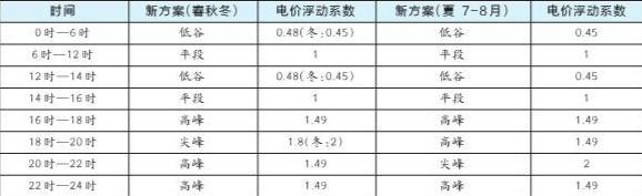 一是尖、峰、平、谷总时长不变,尖峰、高峰、平段、低谷分别为2小时、6小时、8小时、8小时;二是分时电价浮动比例不变。平常月份尖峰、高峰、平段、低谷时段电价倍率分别为1.8:1.49:1:0.48。夏季、冬季用电高峰月份(夏季7月、8月,冬季12月、1月),用电尖峰时段电价浮动比例由1.8调整为2,低谷时段电价浮动比例由0.48调整为0.45;三是电价政策实施范围保持不变。用电容量在100千伏安及以上的工商业用户用电执行分时电价,电气化铁路牵引用电、商业用电和机关、部队、学校、医院、城市公共照明等非居民照明用电除外。电热锅炉、冰(水)蓄冷空调等电储能用电执行分时电价。