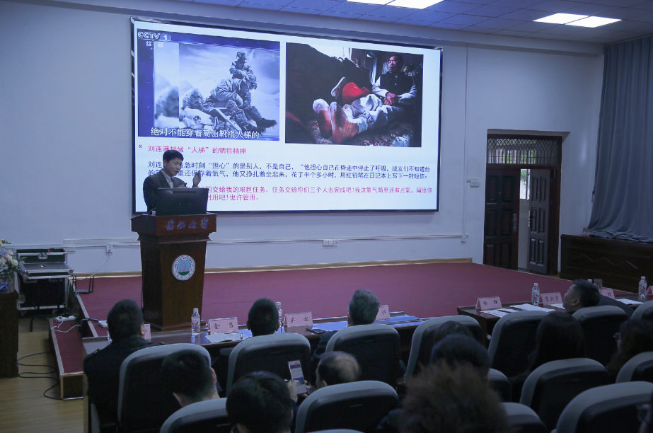陈刚教授以《弘扬科学精神,做一名勇攀高峰的科教工作者》为题,将从背景介绍、珠峰攀登的意义、我的科研经历、学习弘扬科学家精神、总结与展望五个方面,结合个人科研工作经历,讲述了自己的为国测量、弘扬科学精神的心得感悟。陈刚教授先后三次攀登珠峰,曾经作为登山测量队员全程参与了2020年中尼珠峰高程测量国家任务。2022年4月30日,陈刚教授携其儿子陈李昊成功登顶珠峰,创造了世界第一对父子从北坡登顶的纪录。其先进事迹被人民日报、新华社和央视新闻联播深度报道。