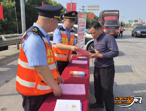 江汉风报道:在第九个“全民国家安全教育日”来临之际, 4月15日,湖北省交通运输厅高速公路路政执法总队顺达大队在二广高速荆州中收费广场等地积极开展“4.15”全民国家安全教育日普法宣传活动。