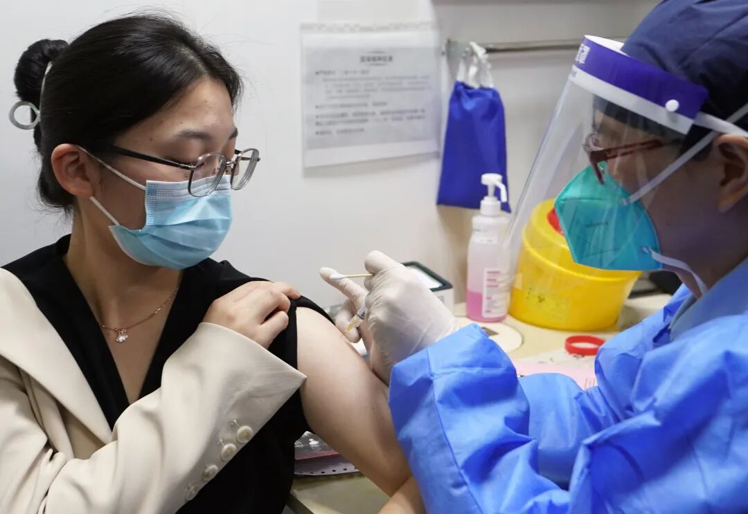 2022年11月11日,一名女士在复旦大学附属妇产科医院接种九价HPV疫苗。刘颖 摄