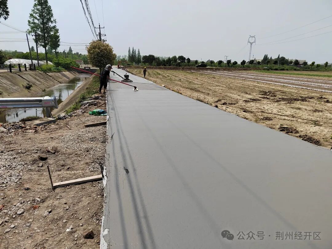 “断头路”位于黄港三组组级道路至垃圾运输通道“西干渠段”间,为附近居民生产生活出行带来不便。村“两委”班子获悉群众心声后,立即行动,在道路附近节制闸管理单位——市四湖工程管理局支持下,启动道路硬化改造工程。
