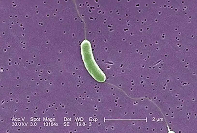 △显微镜下的创伤弧菌。(图源:北京协和医院)它广泛分布于水温较高的世界各河海交界水域、近海、海湾及海底沉积物中,并常寄生于贝壳类等海洋生物中 ,如鱼、虾、牡蛎、蚌等。