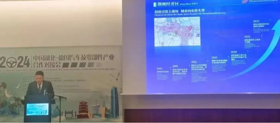 4月24日,2024年中国湖北—德国汽车及零部件产业合作对接会在德国斯图加特举办,荆州经开区党工委委员彭国飞参加活动。