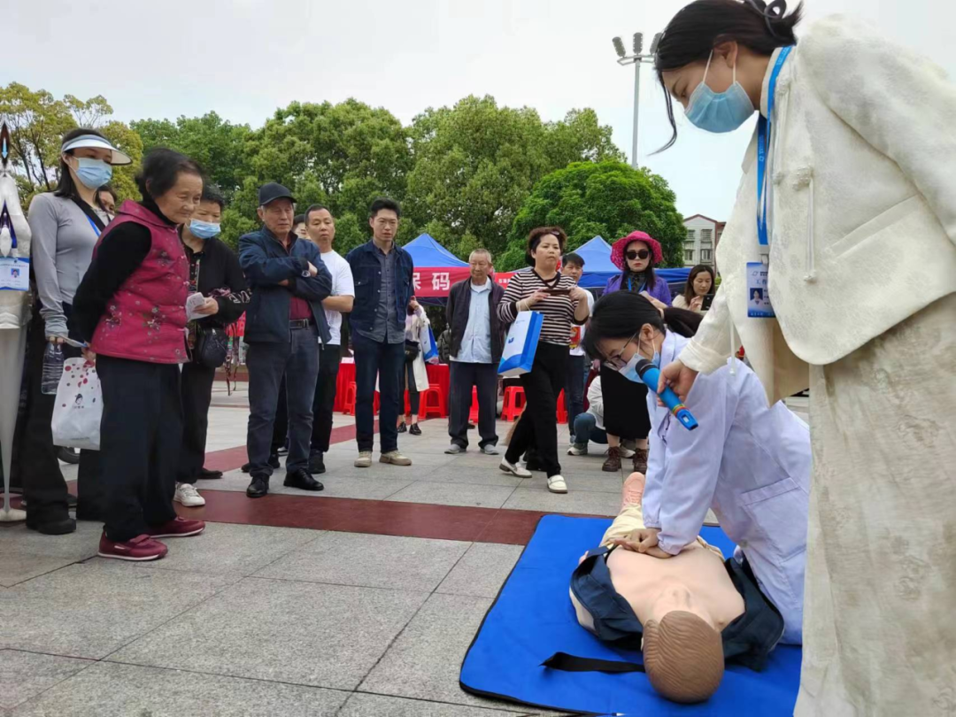 义诊区,前来咨询问诊的群众络绎不绝,整个义诊现场井然有序。荆州市第五人民医院、荆州区中医院、石油四机医院的医务人员认真接待每一位前来问诊的群众,为其提供测血压、量血糖等服务,针对每个居民的不同情况进行诊治并给出处方和诊疗建议,同时针对有需求的群众开展针灸、按摩、推拿等服务,并且在现场进行心肺复苏急救科普,培养群众急救意识和能力。