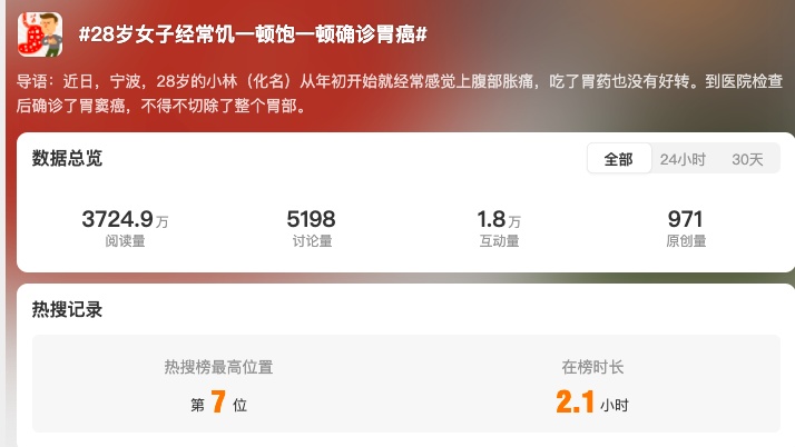4月26日,一名年仅28岁就不幸罹患胃癌的女孩,其遭遇引发网友关注,并冲上热搜。