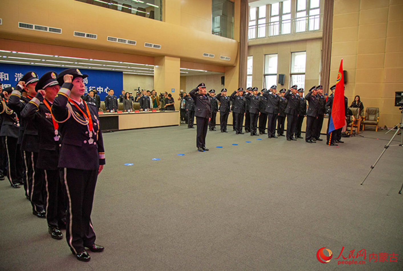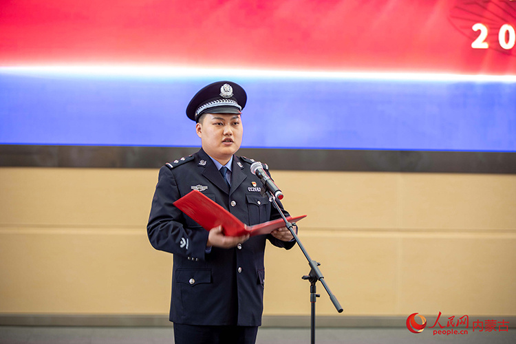 包牧仁带领新警共同宣誓。呼和浩特市公安局供图