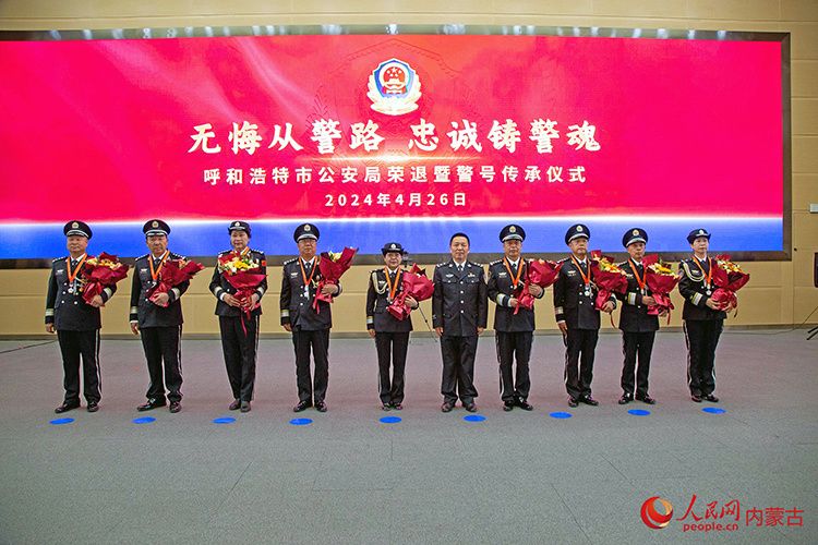 4月26日,呼和浩特市公安局举行“致敬忠诚奉献 赓续警察荣光”民警光荣退休暨警号传承仪式。活动现场为2024年光荣退休的民警代表颁授了荣退纪念章、并举行了警号传承仪式和警旗交接仪式。