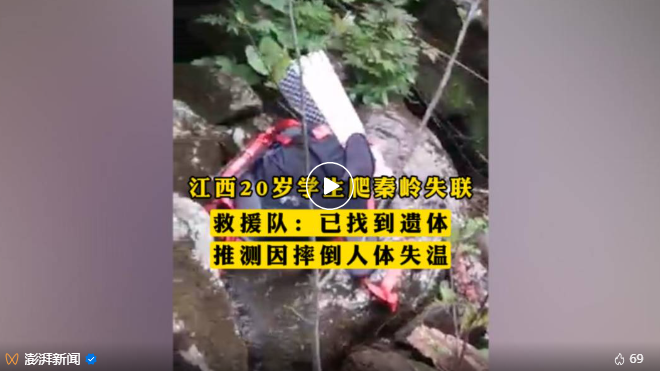 队员称,在冰晶顶附近几公里处发现,推测是下雨滑倒,人体失温不幸离世。