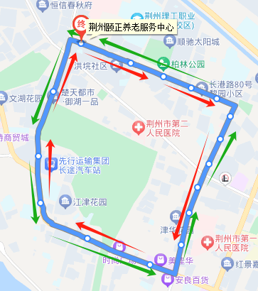 起讫点:荆州市颐正医养服务中心——荆州市颐正医养服务中心(原双向循环)