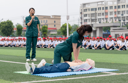 ——5月10日,石首市2024年“5·12”防灾减灾现场,急救中心医护人员向学生们讲解心肺复苏相关知识,消防救援大队现场进行电瓶车火灾扑救教学和灭火器使用教学。学生们在听完讲解后,按照工作人员的指示进行了实际操作。