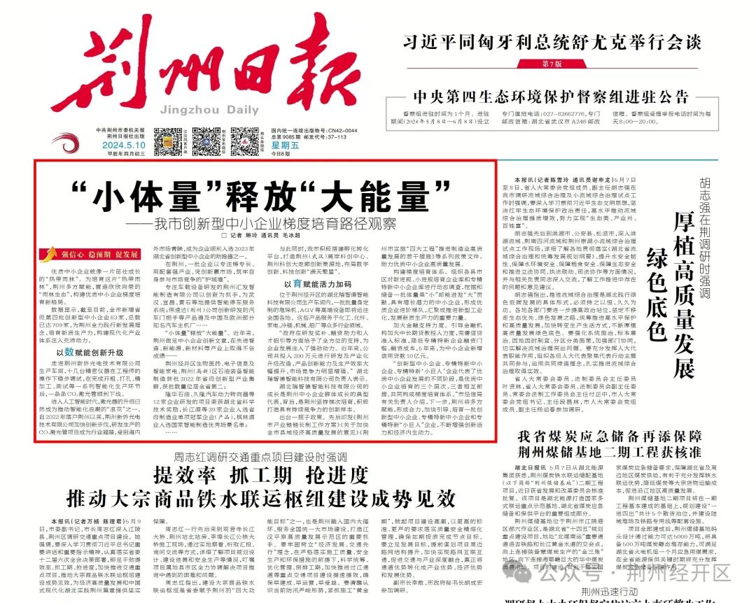 “小体量”释放“大能量”。近年来,荆州做足中小企业创新文章,在先进智造、新能源、新材料等产业上取得不俗成绩——