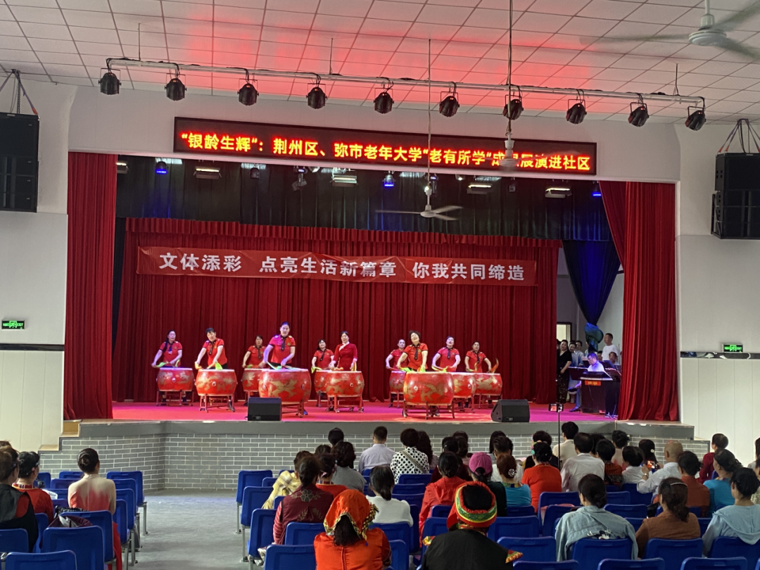 江汉风报道:展演进社区,银龄乐生辉。为丰富老年人精神文化生活,积极引导广大老年学员发挥余热,近日,弥市镇老年大学联合荆州区老年大学在弥陀寺社区开展“银龄生辉:‘老有所学’成果展演进社区”活动,尽显“最美夕阳红”。