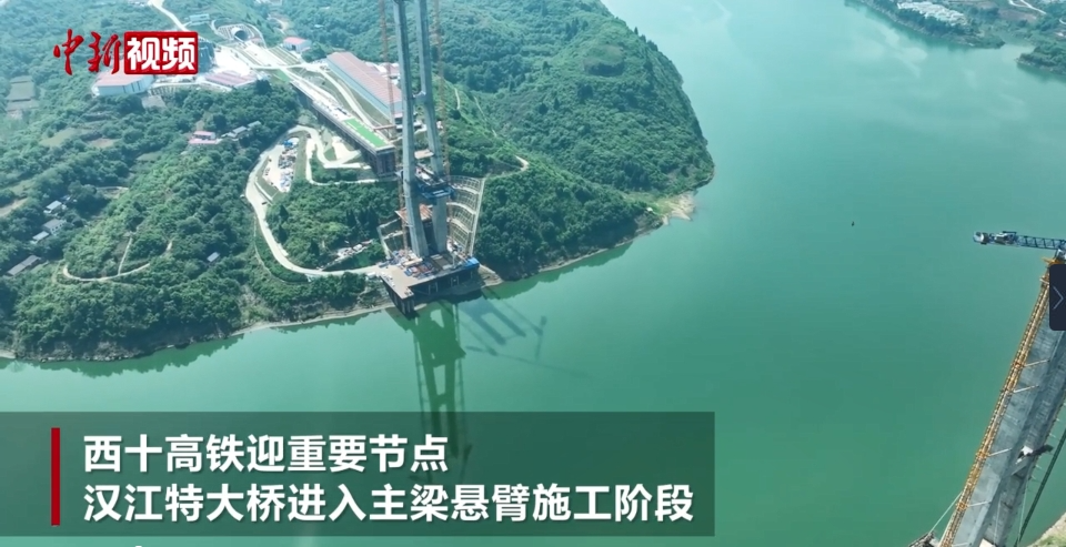 ● 5月7日,西十高铁湖北段汉江特大桥首对牵索挂篮安装到位,标志着国内最大跨度梁桁组合结构斜拉桥进入主梁悬臂施工阶段。这座桥屹立在汉江边,宛如一座天空之桥,很多人称赞:又一个网红大桥在湖北出现。