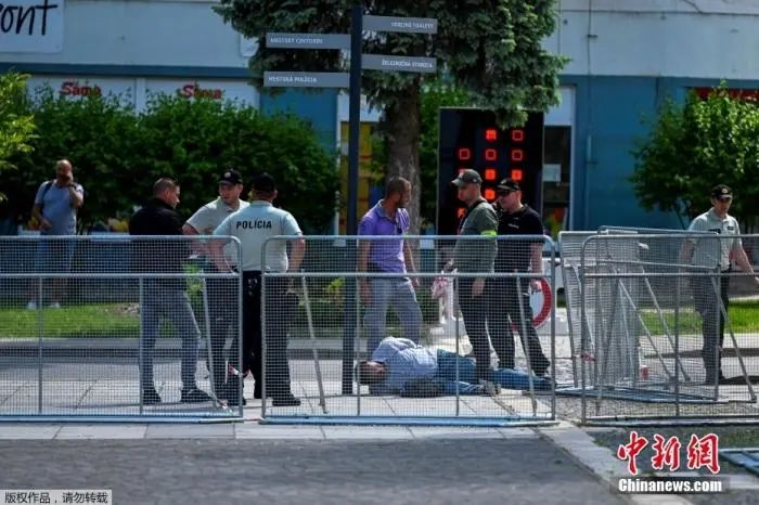 袭击者或有持枪执照 多家外媒报道,斯洛伐克总统恰普托娃确认,袭击者已被警方拘留。 BBC发布的一张照片显示,袭击者身穿淡蓝色衬衫坐在地上,双手反绑在背后。