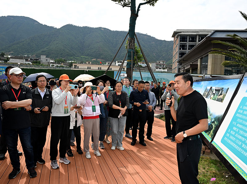 5月16日,参加百家主流媒体社长总编彝乡行活动的近百家新闻媒体记者前往冕宁县的彝海结盟纪念馆、结盟新寨、复兴镇建设村,追忆红色足迹、观赏自然风光、体验民族风情,实地采访、深情记录冕宁乡村振兴的生动实践与丰硕成果。