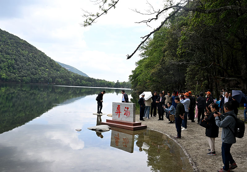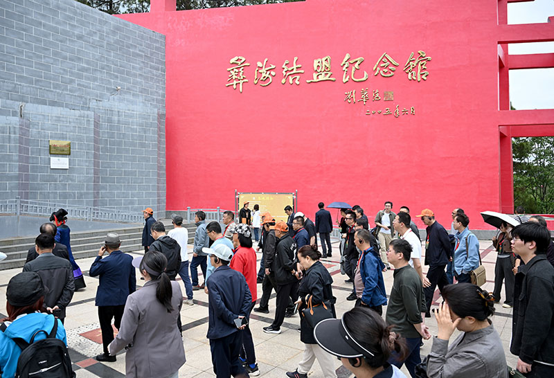 “1935年5月22日,红军刘伯承司令员和彝族果基家支首领果基约达(小叶丹)在彝海边歃血为盟、结为兄弟……”在彝海结盟纪念馆广场前的青青草坪上,三块“结盟石”岿然伫立,似乎在诉说“彼此愿永结弟兄,肝胆相照,团结如一,永不反悔”的铮铮誓言。现场讲解员向与会代表们生动地介绍“彝海结盟”的故事,大家认真聆听、频频点头,对红军长征路上的这段故事肃然起敬。