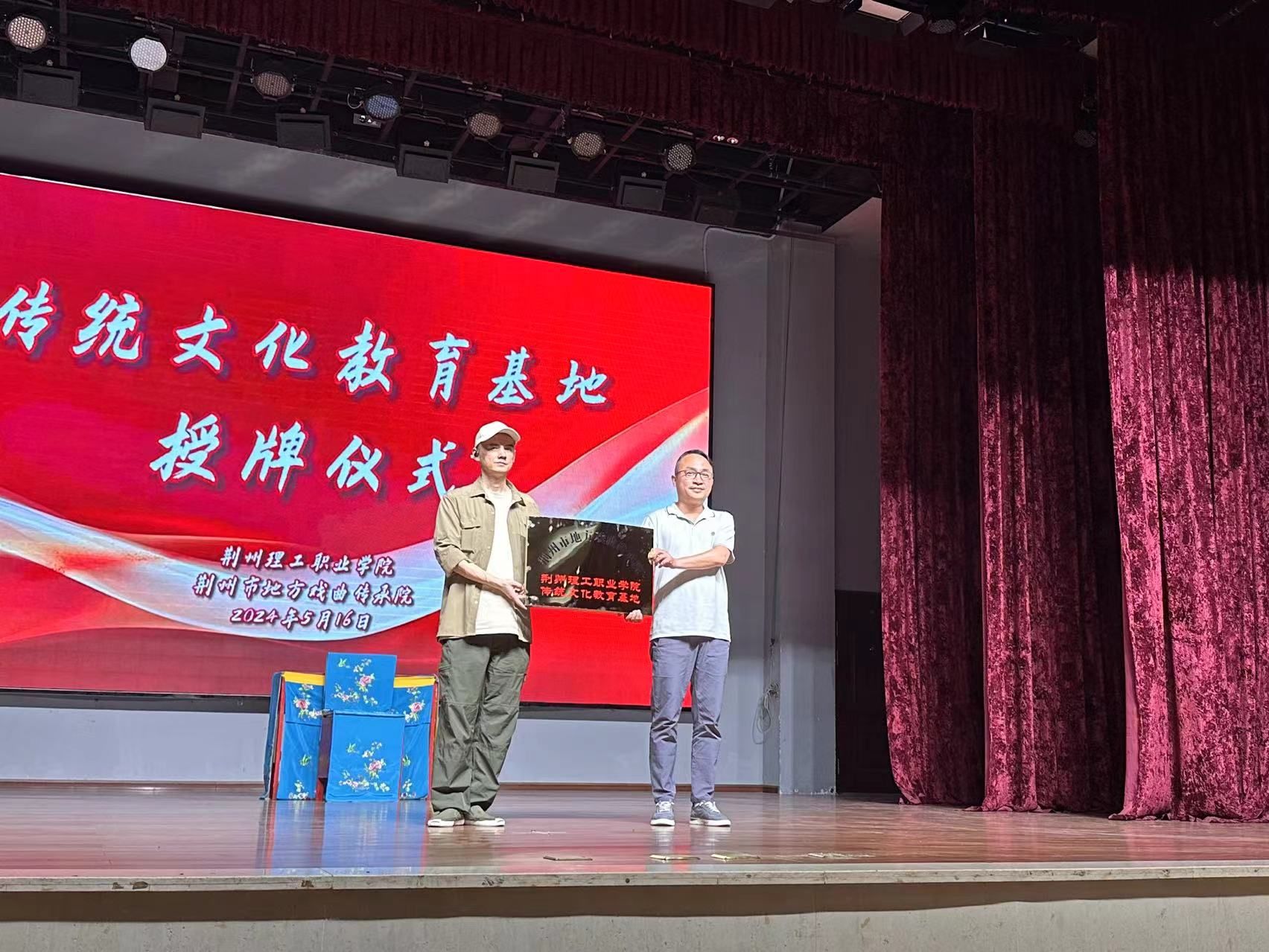 活动现场,荆州市地方戏曲传承院党支部委员、副院长施年峰为荆州理工职业学院授牌。