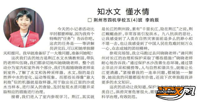 江汉风报道:近日,荆州晚报小记者团走进了荆江水文水资源勘测局沙市水文站开展社会实践活动。活动结束后,小记者们纷纷怀着对水文的热情,撰写了一篇篇作文。其中,小记者李昀辰在23日晚收到了一封感人的信。
