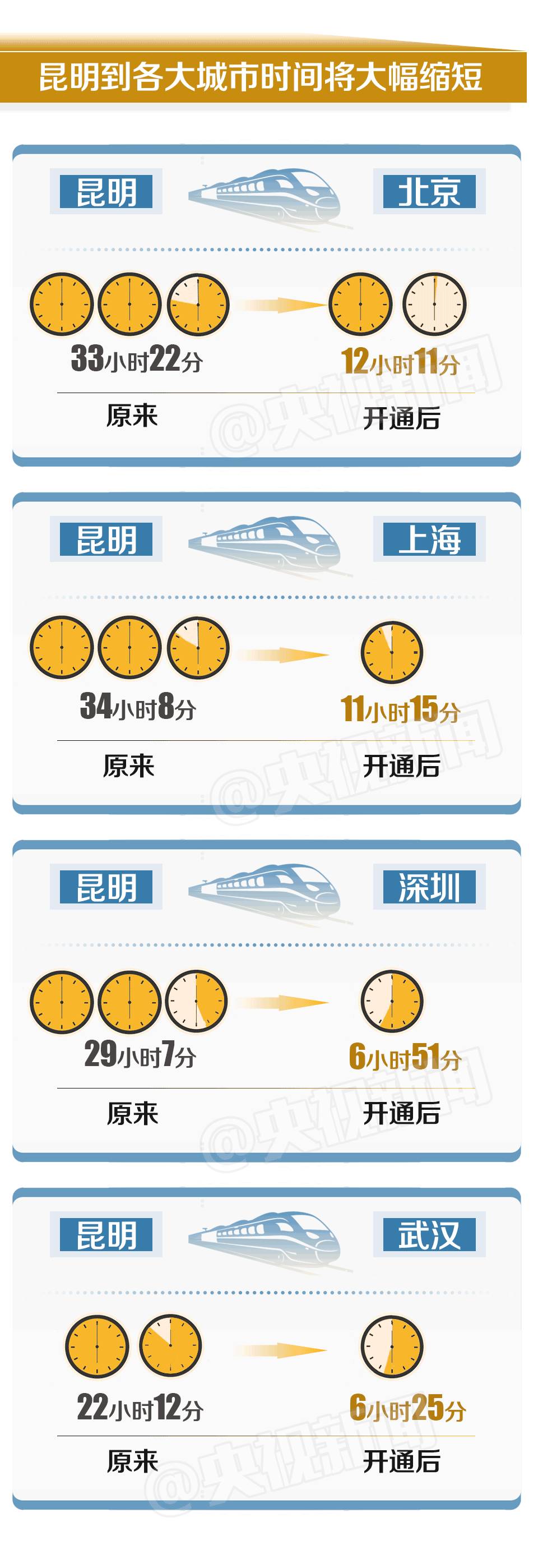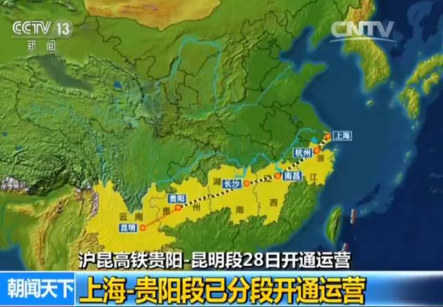 12月28日,上海至昆明高速铁路贵阳至昆明段将开通运营,标志着我国东西向最长高铁——沪昆高铁即将全线通车(上海-贵阳段此前已开通)。