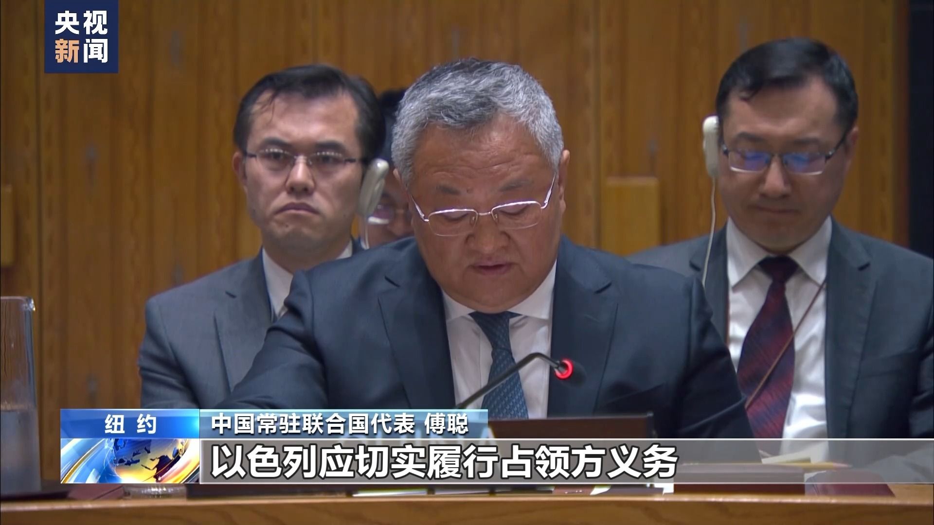 中国常驻联合国代表 傅聪:以色列应切实履行占领方义务,立即开放全部陆路过境点,保障人道物资充足快速准入,保障人道机构和人员安全,人员物资安全有序分发。