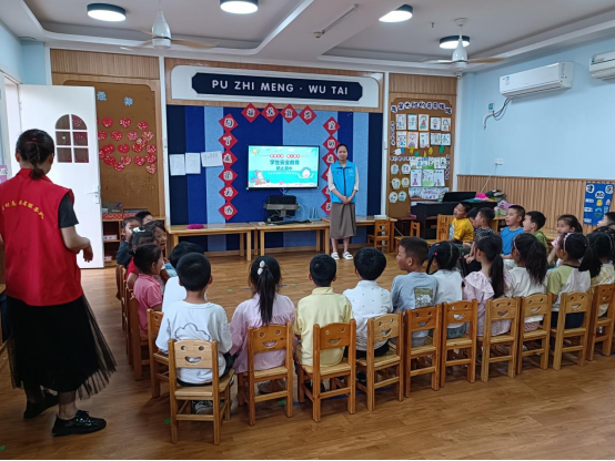 志愿者首先组织开展“防溺水安全知识”PPT宣讲,播放“防溺水”动画视频,向小朋友们详细讲解防溺水注意事项,提醒大家不要私自下水游泳;向小朋友们讲解防溺水“六不准”,防范溺水事故发生。如果碰到其他小朋友有危险的玩水行为时,要及时制止,并提醒大家如遇同伴溺水,要大声呼救,主动寻求成年人的帮助;志愿者和老师们还带着儿童一起创作有关防溺水绘画的作品。