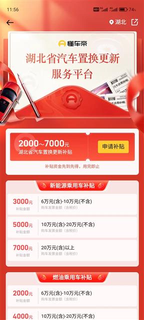 5月31日早上8点开始,符合条件的消费者可以下载懂车帝APP进入“湖北省汽车置换更新服务平台”板块,按系统提示完整、准确、清晰填写和提交补贴申请信息。