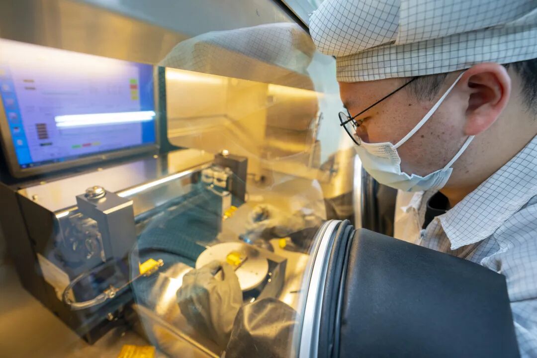 位于光谷的国家信息光电子创新中心无尘实验室内,工程师操作设备完成对平行封焊工艺,实现器件气密性封装。(湖北日报全媒记者 魏铼 摄)