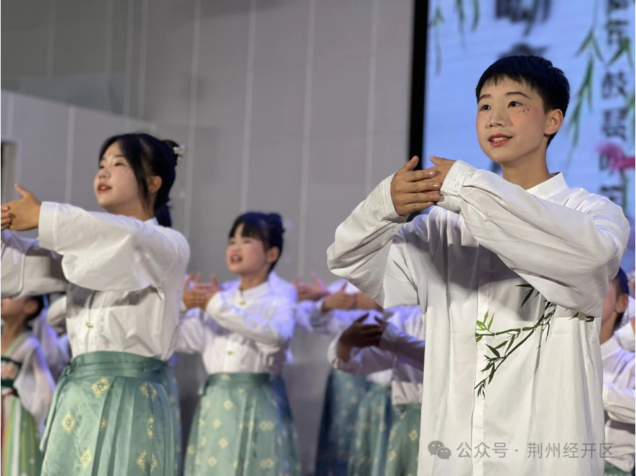 此次艺术节以“梦绽芳华 美育荆州”为主题。经开区一小的舞蹈《羽毛童辉》以其独特的创意和精湛的技艺,将舞蹈与羽毛球巧妙融合,为观众带来一场视觉与听觉的盛宴;联合街道幼儿园的孩子们唱响《难忘的歌》,通过歌舞情景剧的方式带领观众“重回”革命先辈战斗的光辉岁月;经开区实验中学的同学们合唱《小雅鹿鸣》,通过传统文化抵过时光交替,直达华夏儿女的心间.....精彩纷呈的节目,赢得现场阵阵掌声。据了解,近年来,经开区各校秉承“五育并举”的教育理念,努力把学生培养成品学兼优、素质全面、多才多艺的人才,为学生的健康成长奠定基础。学校依托各类专业课程彰显艺术特色,全面打造“艺”彩纷呈、和谐发展、快乐求知的校园。
