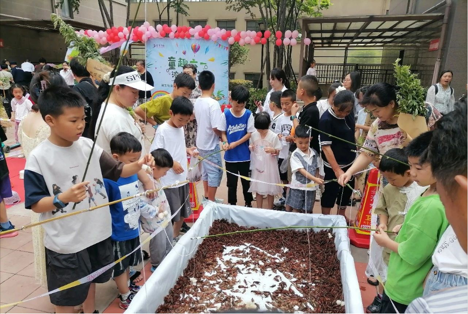社区工作人员精心准备了有趣的活动,孩子们在家长的陪伴下,或是化身“小画家”在团扇上精心作画,或是拿着小鱼竿,在“小池塘”里钓小龙虾。