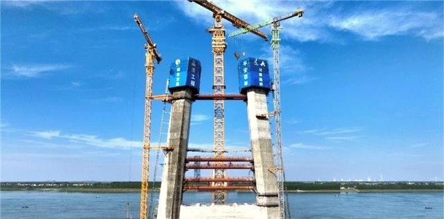 江汉风报道:近日,由湖北交投集团投资,中铁建大桥局、湖南路桥承建的观音寺长江大桥主塔右幅第17节段混凝土浇筑完毕。至此,大桥南、北两岸主塔总高度均突破百米大关,进入超高空施工阶段。建设过程中,针对大桥基坑开挖紧邻长江干堤、钢筋混凝段自身重、墩身为渐变截面六边形、结构线型控制难度成倍增长等施工难题,项目公司细化液压爬模等大型设备检查验收程序、采用挂篮现浇箱梁智慧养生喷淋系统等一系列举措,优化施工方案、强化资源配置,确保项目质量与安全。