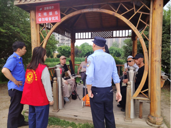 宣传中,志愿者们穿着红马甲沿辖区的各小区及太师渊公园周边开展巡逻活动,逐一排查辖区内跳广场舞、打太极拳等噪音扰民情况,通过实地巡查、当面劝导以及在网格群发起温馨提示等多种方式,倡导大家共同助力高考,劝导大家在中高考期间降低噪音避免扰民,尽可能减少噪音,为辖区莘莘学子的专心参考尽一份力。