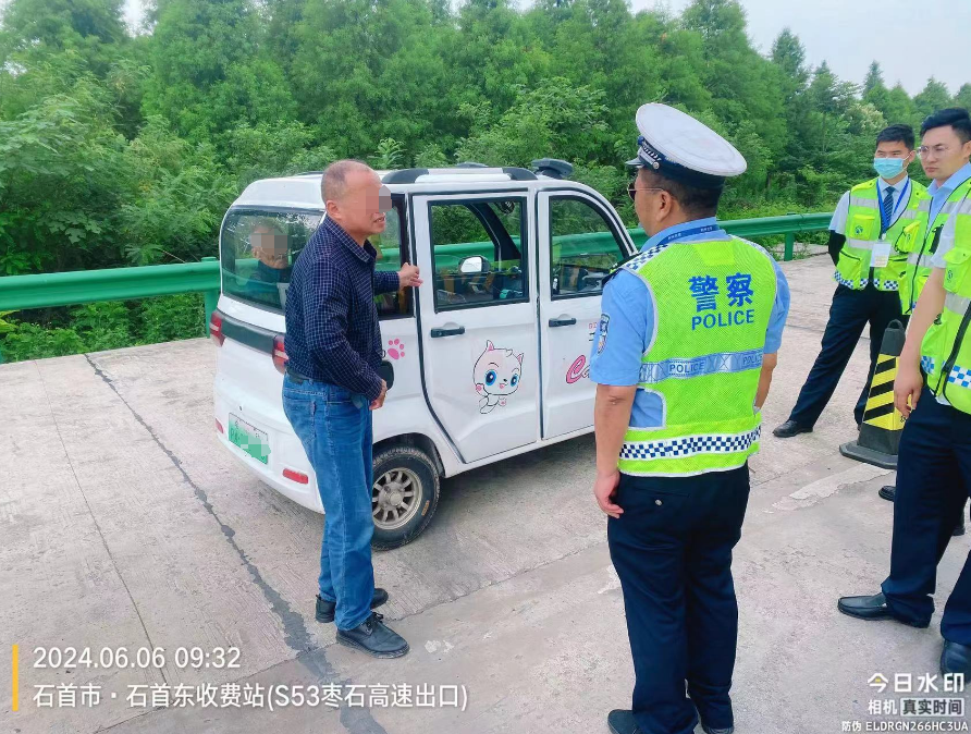 当日上午8时35分许,荆州高警江南大队指挥室接到报警称,有一辆俗称“老头乐”的老年代步车在石首东收费站入口逆行驶上高速。