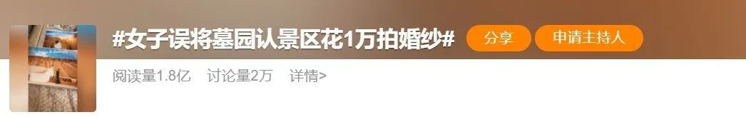 近日,一则"女子误将墓园认景区花1万拍婚纱"的信息引发热议。