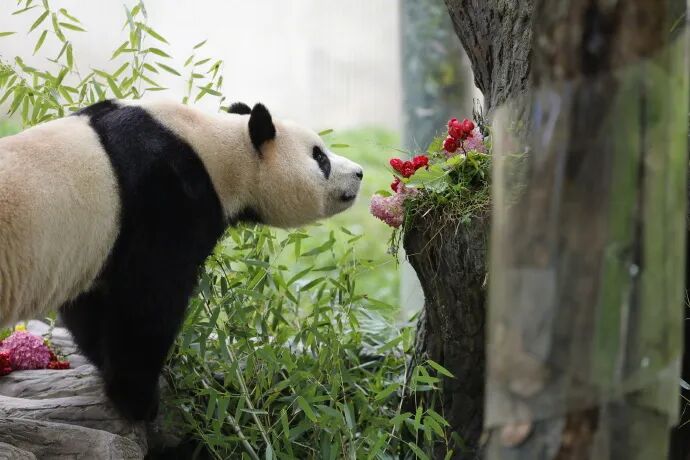 6月12日上午,大熊猫“福宝”在中国大熊猫保护研究中心卧龙神树坪基地正式与公众见面。