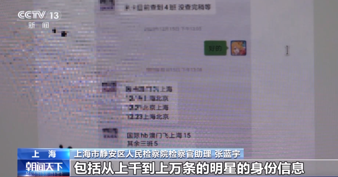 上海市静安区人民检察院检察官助理 张蓝宇:包括上千到上万条的明星身份信息、手机号码、航班的行程信息。