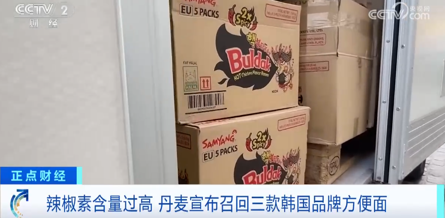 近日,丹麦食品监管机构宣布召回3款韩国三养食品公司生产的方便面产品,理由是这些产品中的辣椒素含量过高,食用后可能导致“急性中毒”。