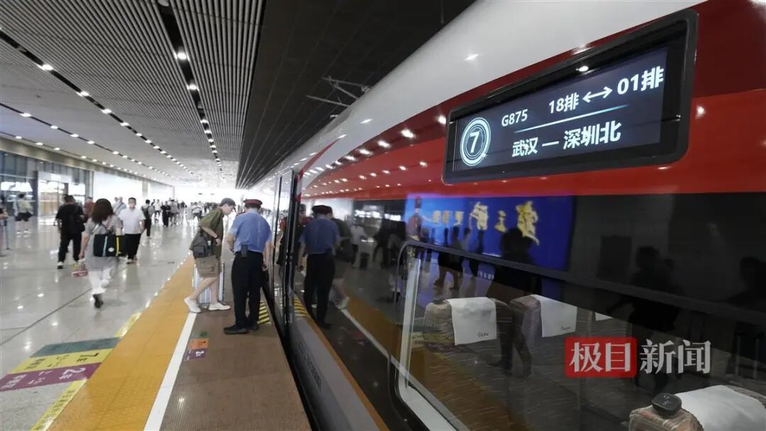 担当G875车次的是最新款的复兴号智能高铁,也是中国铁路武汉局开行的武广高铁速度快、停站少的始发标杆车。武汉至广州区间仅停靠长沙南一站,全程仅需3小时24分。