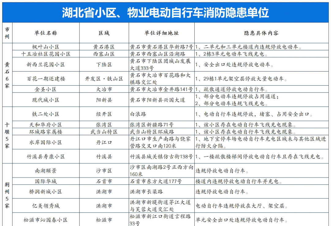 湖北消防根据各地检查情况曝光62家小区、物业单位