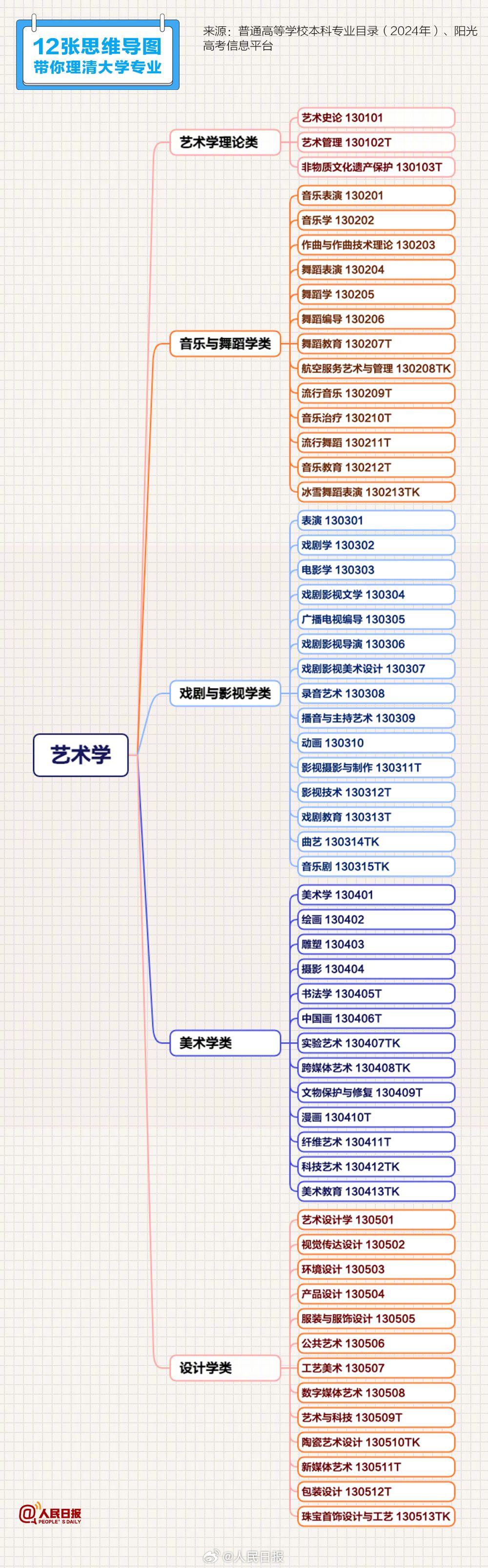 转存收藏!12张思维导图理清大学专业 2024-06-20 15:44 人民日报 0 哲学、经济学、法学、教育学、文学、历史学、理学、工学、农学、医学、管理学、艺术学。2024高考志愿填报在即,普通高等学校本科的这12个学科门类,你了解多少?速存报志愿必备学科专业清单↓↓愿考生选到理想的专业!